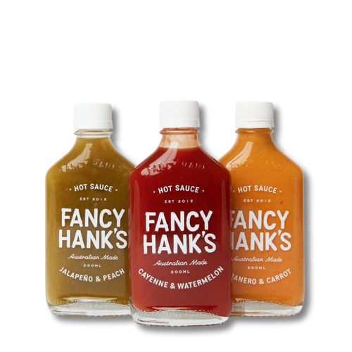 Why settle for one when you can build your own line-up? Choose from our flexible pack sizes — 3, 6, or 9 — and fill them with your favourites from Fancy Hank’s full range of sauces and seasonings.