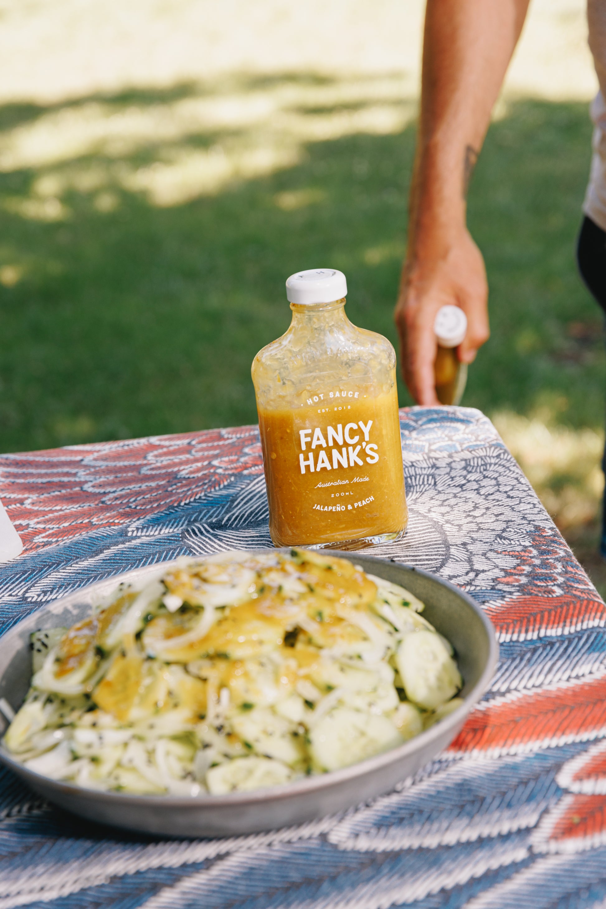- Jalapeño Chilli Puree (26%) (Jalapeño Chillies, Food Acid (Acetic Acid)), Peaches (26%) (Peaches (61%), Reconstituted Juice (Water, Pear Juice, Acidity Regulator (Citric Acid)), White Vinegar, Onion Puree, Raw Sugar, Garlic, Salt, Diced Tomatoes, Vegetable Gum (Xanthan Gum)